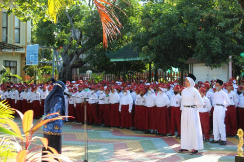 Tepat pukul 07.00, Rabu (17/8/2022), upacara bendera dimulai. Seluruh peserta didik mulai kelas 3 s.d. 6 hadir pada kesempatan itu. Tidak ketinggalan Bapak dan Ibu dewan guru beserta staf mengikuti dengan sikap siap sempurna tetap hadir untuk memberi penghormatan kepada Merah Putih.