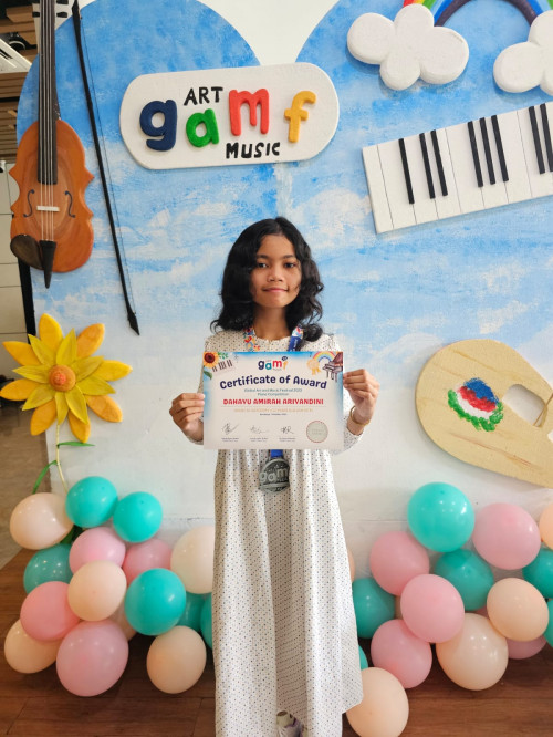 Surabaya – Salah satu siswi SD Negeri Sukabumi 2 Kota Probolinggo belum lama ini berhasil menorehkan prestasi di kompetisi musik. Dia adalah Dahayu Amirah Ariyandini, siswi kelas VID. Ia berhasil mendapatkan Silver Prize dalam Global Art and Music Festival 2023 Piano Competition. Adapun kompetisi tahunan tersebut diselenggarakan dengan tajuk Music Festival 7 - 8 Oct 23 @Surabaya (Onsite & Online) event managed by @sesabyldc In collaboration with @ippasea