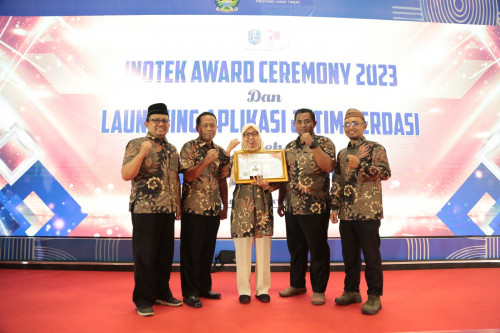 "Para Bupati dan Wali Kota, Pj Bupati dan Pj Wali Kota yang menerima penghargaan INOTEK Award 2023, selamat dan sukses. Teruslah berinovasi. Terima kasih atas kerjasama semuanya untuk terus melakukan inovasi terhadap berbagai update teknologi yang hari ini adalah kebutuhan yang tidak bisa di tunda-tunda," pesan Gubernur Khofifah. (abz)