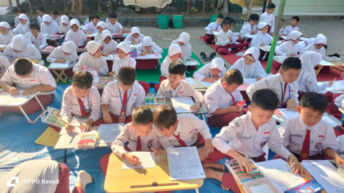 Para peserta didik dengan semangat dan tekad untuk menyuarakan isu yang penting ini. Dengan alat gambar, cat, dan kertas gambar sebagai senjata mereka, para peserta didik berupaya menggambarkan pesan anti-bullying melalui karya-karya mereka.