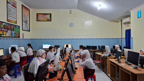 ”Sarana Prasarana kami kalau untuk internet melalui Wi-Fi dan komputer sebanyak 1 unit untuk server dan 15 unit untuk client yang ikut 30 orang sehingga kami ambil dua sesi,” katanya.