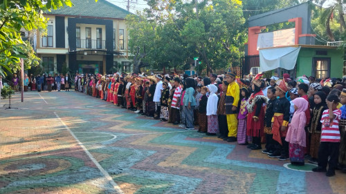 Keistimewaan peringatan Hardiknas tahun ini di SD Negeri Sukabumi 2 Kota Probolinggo juga terlihat dari inisiatif unik seluruh warga sekolah mengenakan pakaian adat dari berbagai daerah di Indonesia. Para siswa dan guru tampil anggun dengan busana tradisional yang beragam, mencerminkan kekayaan budaya Nusantara. Langkah ini menjadi bagian dari pendidikan karakter yang menanamkan nilai kebhinekaan, toleransi, dan kebanggaan terhadap budaya bangsa sejak usia dini.