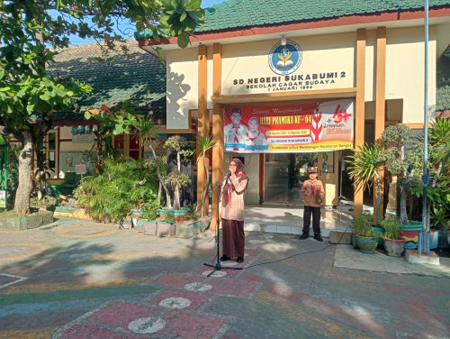 Selaku Pembina Upacara, Kepala SD Negeri Sukabumi 2 Kota Probolinggo, Riana, M. Pd, menyampaikan, bahwa Gerakan Pramuka dari tahun ke tahun telah menunjukkan eksistensinya dalam mempersiapkan generasi muda dan selalu menjadi garda terdepan yang berjiwa Pancasila.