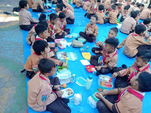 MAPAG BERKAH menjadi momen yang ditunggu-tunggu oleh murid. Mereka datang membawa bekal makanan sehat dari rumah untuk disantap bersama di lingkungan sekolah, sebelum proses belajar mengajar dimulai. Jenis makanan yang dibawa disesuaikan dengan prinsip gizi seimbang, seperti nasi atau roti, sayuran, buah-buahan, dan minuman sehat tanpa bahan pengawet.
