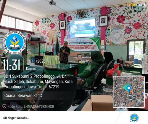Probolinggo, (Humas) – Dalam rangka meningkatkan kualitas literasi di lingkungan sekolah, SDN Sukabumi 2 Kota Probolinggo menyelenggarakan kegiatan Pelatihan Kompetensi Guru dalam Menumbuhkan Budaya Literasi Sekolah. Kegiatan ini menghadirkan narasumber Sudarmanto, M. Pd, seorang pakar pendidikan yang aktif dalam pengembangan sekolah literat. Kamis, 13 November 2025.